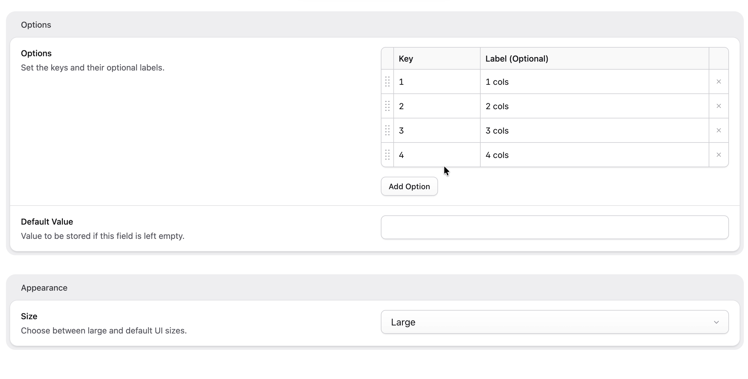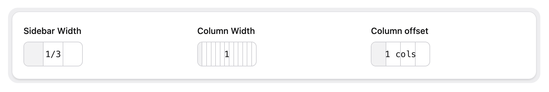 - handle: column_width field: type: flexible_width display: 'Column Width' options: col-1: 1/3 col-6: 2/3 col-12: 3/3